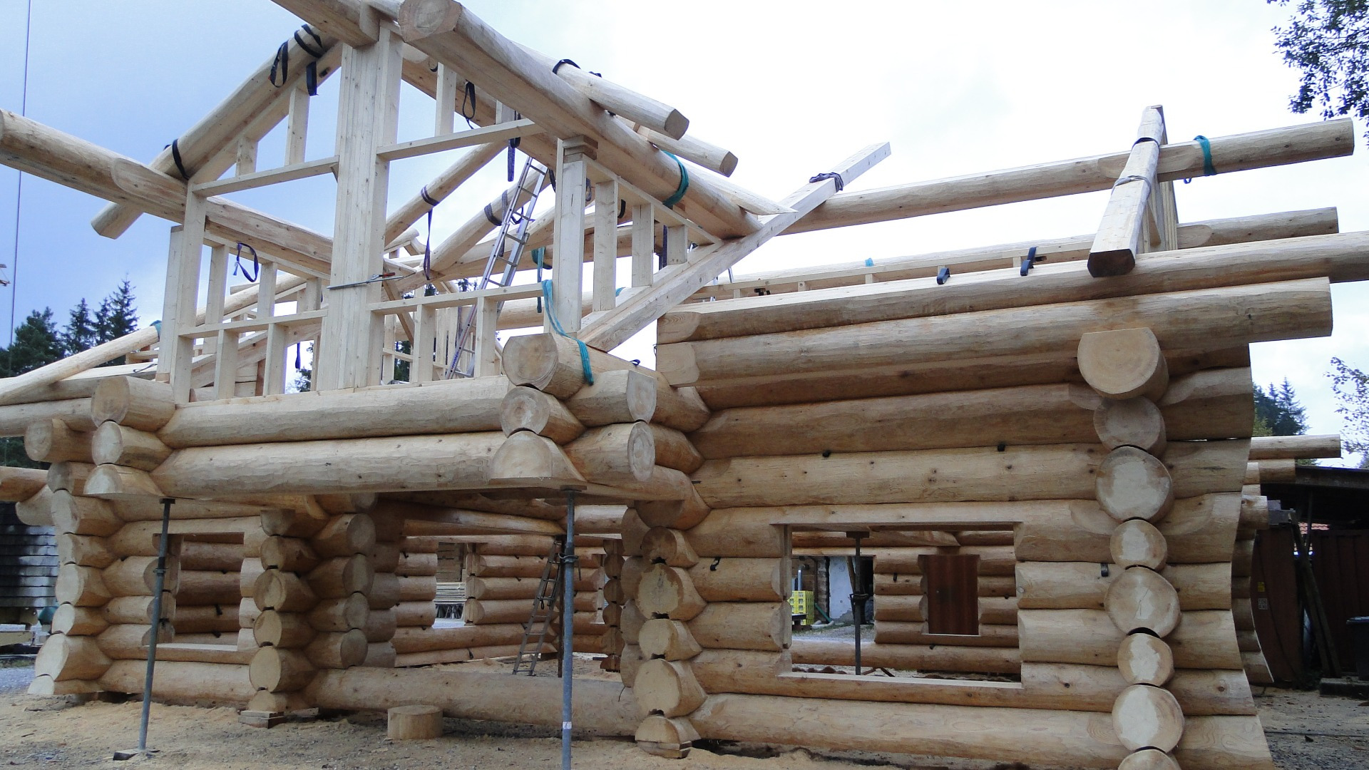 - Wykonanie ścian nośnych z bali